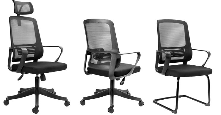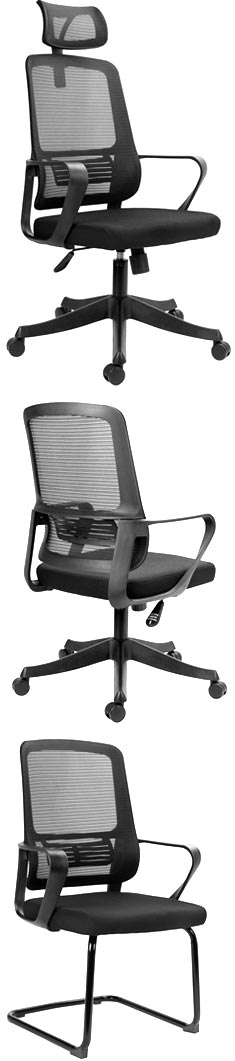 Silla Ejecutiva Ergonomica con espaldar en malla traslucida, apoyo lumbar Fijo, cabecero graduable en altura y angulo, brazos graduables en altura.